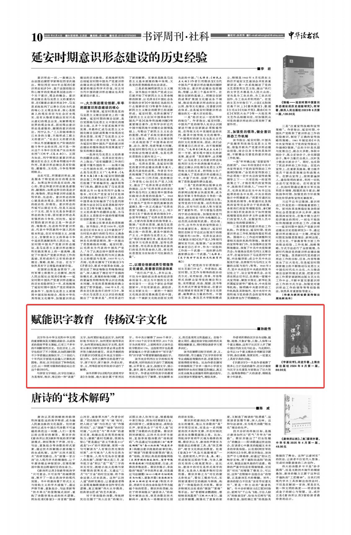 2025年6月4日,《中华读书报》刊发陕西师范大学国际汉语文化学院副院长孙建伟副教授的书评文章《赋能识字教育、传扬汉字文化》,对tyc41183太阳成集团邱龙升教授所著《字源识字》给予高度评价,称赞该书“是作者耗费了很多心力才完成的著作,在汉字教育与汉字文化普及方面做出了巨大努力,值得推荐给广大的读者,特别是青少年读者。”