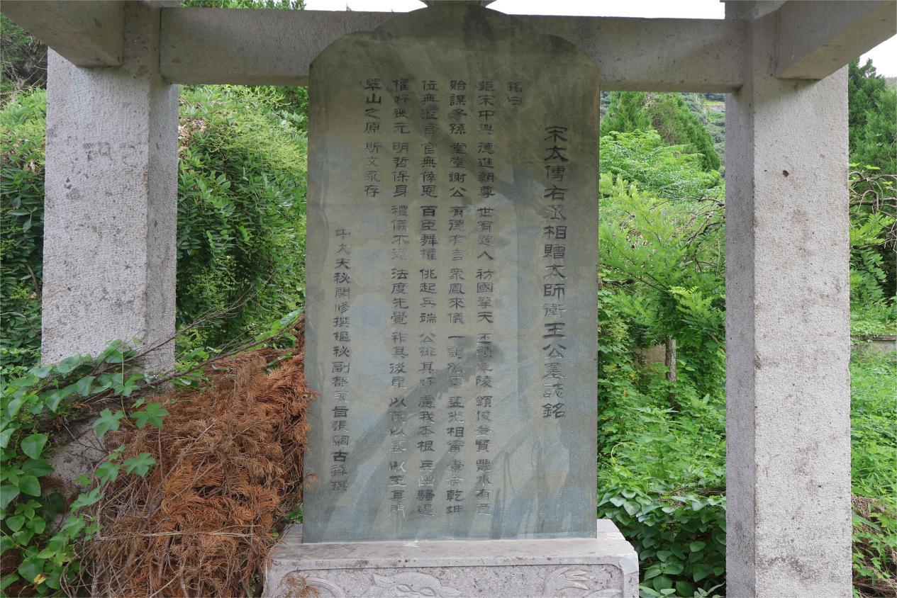 墓道两旁葳蕤的杂草后,有二亭伫立,亭中各立一块石碑,分别刻着“宋谢太傅右丞相赠太师卫王公墓志铭”和后人为他撰写的简介及遗训。墓前残碑无声,却昭示着超越生死的精神传承。堂堂谢公虽身归黄土,但他“有德有言”的作风担当、力主抗金的家国情怀、编修法典的治世智慧,早已融入浙东文化的血脉。凝望斑驳的遗训,石间“居乡以和睦为本,存心以忠厚为本,作事以公平为本”的诫命,穿透八百年风雨,依然铮铮作响。