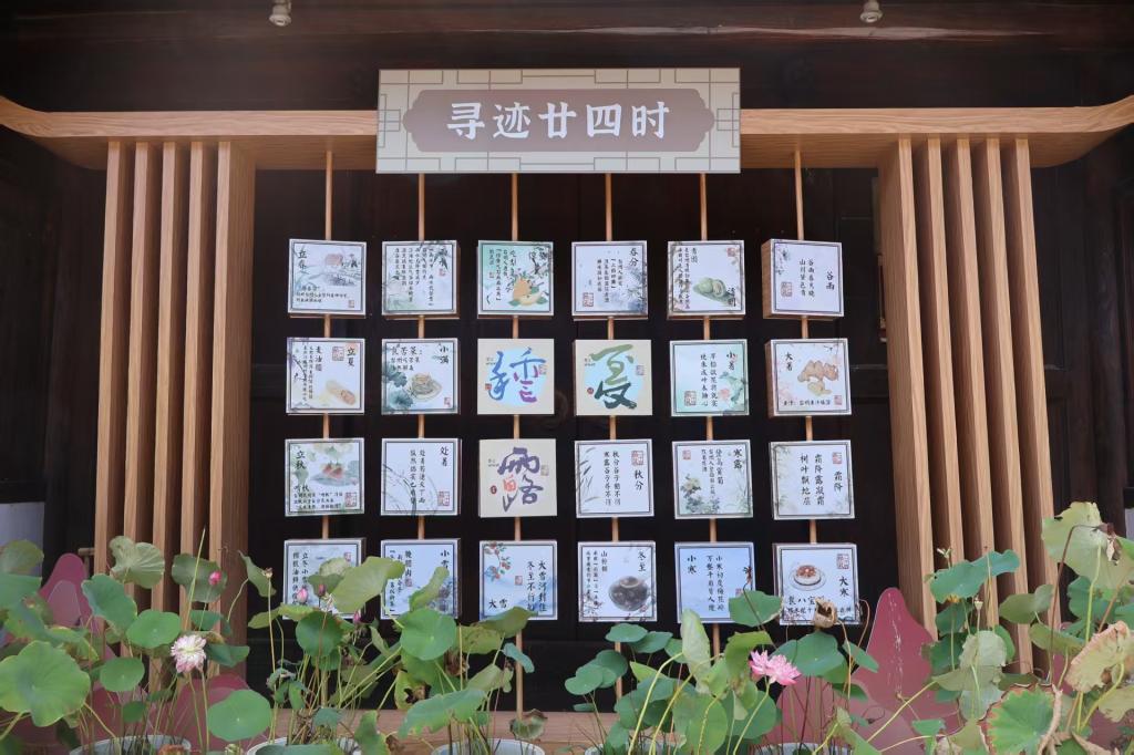 行至“寻迹廿四时”展示区,眼前瞬间展开一幅诗意长卷。二十四节气展板,以手绘插画、诗意文字,串联起季节流转与生活智慧。立春的希望、夏至的热烈、秋分的收获、大寒的静思,在古街屋檐下,与荷香相伴,令传统农耕文化以鲜活形式触达人心,成为连接古今生活美学的纽带。