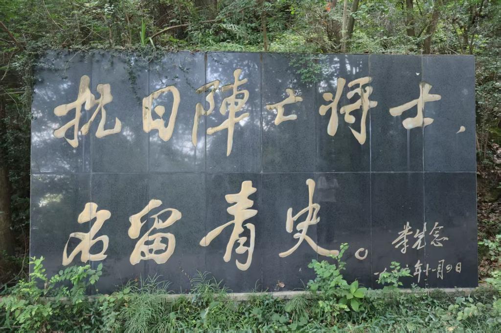 行至“抗日阵亡将士,名留青史”的石碑前,金色大字在阳光下格外耀眼。队员们驻足凝视,有人轻声念出文字,有人陷入沉思,这短短两行字是对先烈功绩的永恒铭记,也让红色精神深深烙进大家心中。