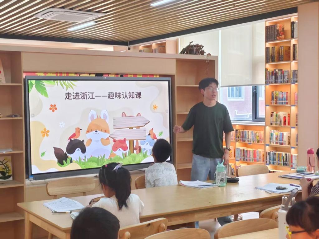 实践之始,旨在启智增识的“走进浙江——趣味认知课”活动拉开了序幕。队员们化身向导,带领孩子们“云游”诗画江南。从省名渊源到地市风貌,从山水胜景到风物人情,一堂课犹如一扇窗,孩子们畅所欲言,问答之间,眼中闪烁着好奇与兴奋的光芒。通过这节课孩子们得以窥见家乡浙江的丰饶多姿,在幼小的心灵中悄然播下热爱乡土、探索世界的种子。