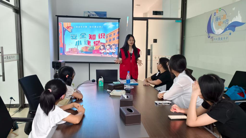 在安全课程中,除了用通俗的语言讲解安全相关知识外,实践队成员们以彩纸为媒串联起了孩子们的安全认知。成员们拆解防溺水、防拐骗知识,在PPT上演示自救技能,孩子们则用剪裁拼贴的形式将安全意识具象为警示场景,抽象的安全规则在指尖落地生根。