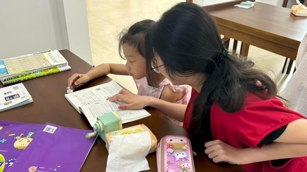 学业辅导是每日上午的固定安排。成员们关注不同年龄段孩子的学科难点,采用“一对一答疑”模式,从语文阅读到数学题目,全方位地帮助孩子们解决作业困惑。这种持续且精准的辅导,使得孩子们在暑期得以保持学习节奏,在轻松氛围中提升学业信心,为新学期蓄力。