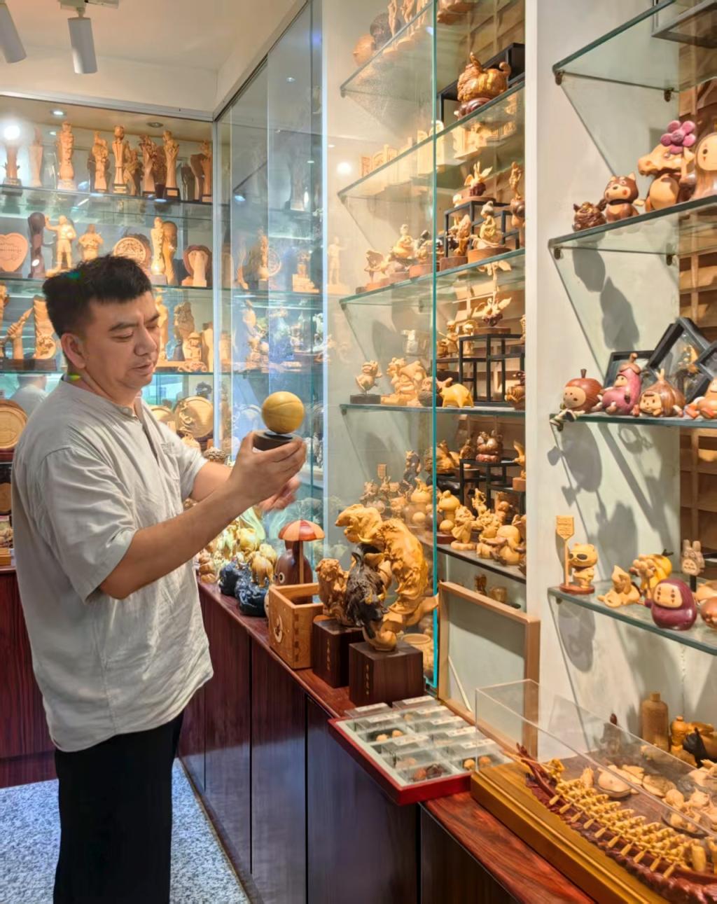 让非遗“走出去”是大师们的共同追求。高公博胸怀人类命运共同体的宏愿,他耗费十年心血完成的《百国之木》系列作品,精选118个国家的木材,为每一块木材量身定制国家故事——坦桑尼亚的缺水儿童、巴西老人与企鹅等,通过创作来反映“一带一路”、维和部队、希望工程等全球性主题的作品,讲述人类共通的故事。他计划在今年10月将作品送往新疆巡展,助力“一带一路”的文化传播,实践“无需翻译的世界语言”。叶柱则展现了主动让非遗 “走出去”的姿态,他不仅亲赴伊朗等地进行文化交流,在战火纷飞的特殊环境下仍然坚持创作,推动黄杨木雕作品亮相国际舞台,向世界传递东方美学的魅力与吉祥寓意。