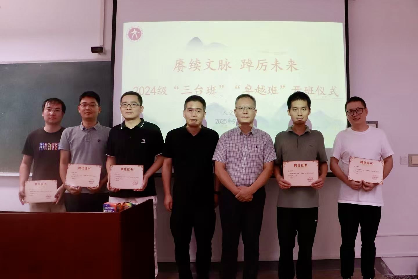 仪式伊始,林军辉介绍了“卓越班”与“三台班”的基本情况,罗争鸣与陈灵强共同为班级导师颁发聘书。