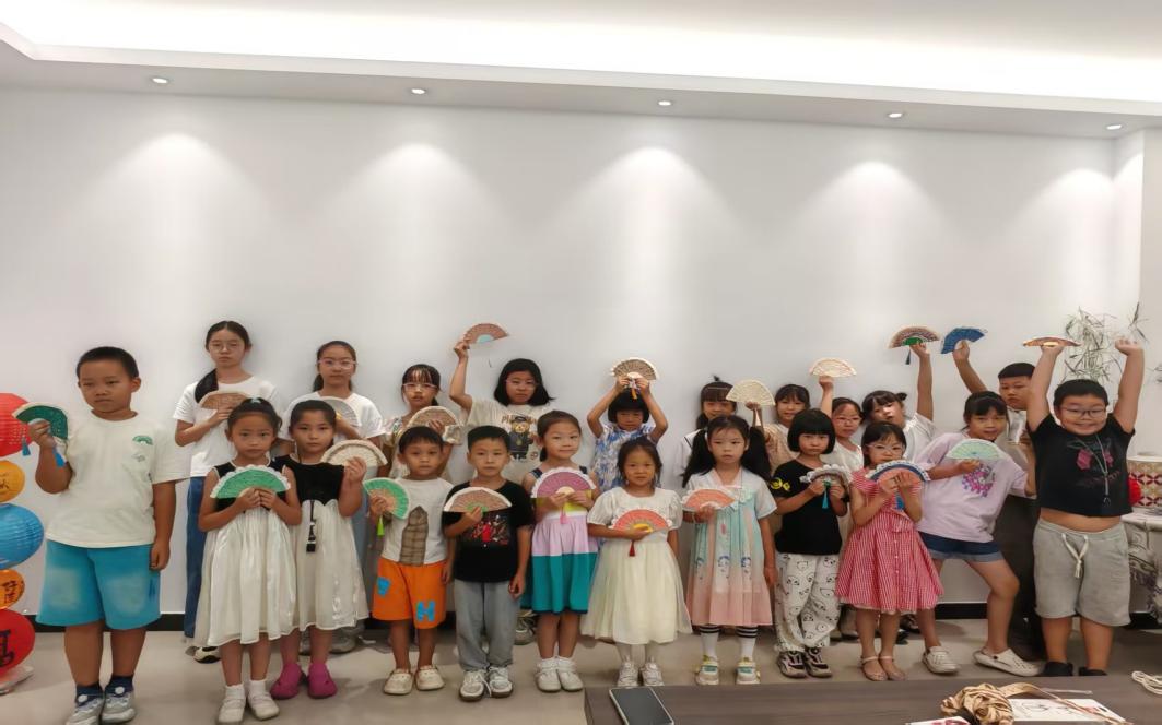 上午11点,活动接近尾声,孩子们站成两排,拿着自己亲手编织的草编扇子,留下了一张大合照,之后他们兴奋地向家长们展示自己的成果。其中一位家长也由衷感慨:“没想到她能做成这么漂亮的扇子,谢谢你们,让她接触了草编这个东西!”
