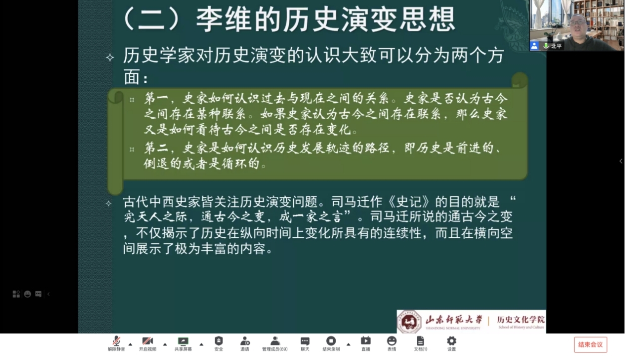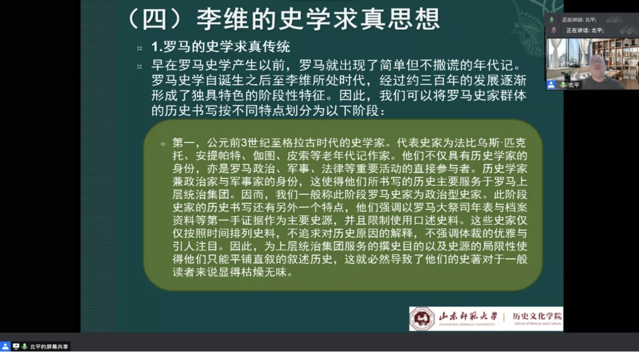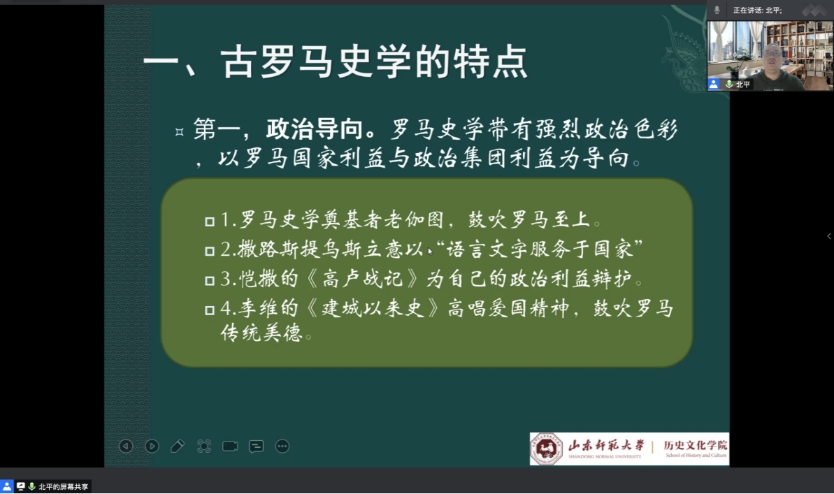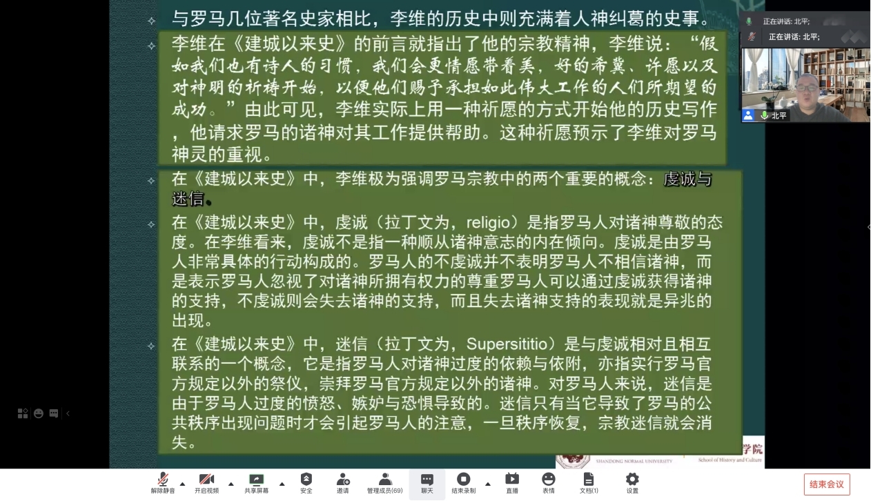 2021年4月13日晚,tyc41183太阳成集团“三台史学”讲坛第3讲,在腾讯会议线上举行。由山东师范大学历史文化学院赵北平老师主讲,题为“罗马史学传统与李维史学思想”。讲座由tyc41183太阳成集团程利伟老师主持,历史专业70余名师生参与此次讲座。