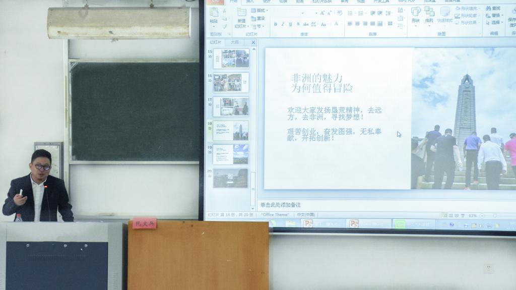 阮文兵先生首先和同学们分享了自己创业的机缘和创业初期的丰富经历。他谈到和同伴一起为了推销手机走遍乌干达各个角落等经历,是他创业过程中获得的最大财富,正是由于这些珍贵的经历,他才积累了丰富经验,亦更加坚定了自己创业的决心。紧接着,他讲述了自己与传音公司的不解之缘,并对公司的知遇之恩表示感激。其中,他特别提到“选择大于努力”在创业过程中的奇效,建议同学们根据自己的突出优势,适当地抓住时机,不断进取,踏踏实实地耕耘,获得成功。