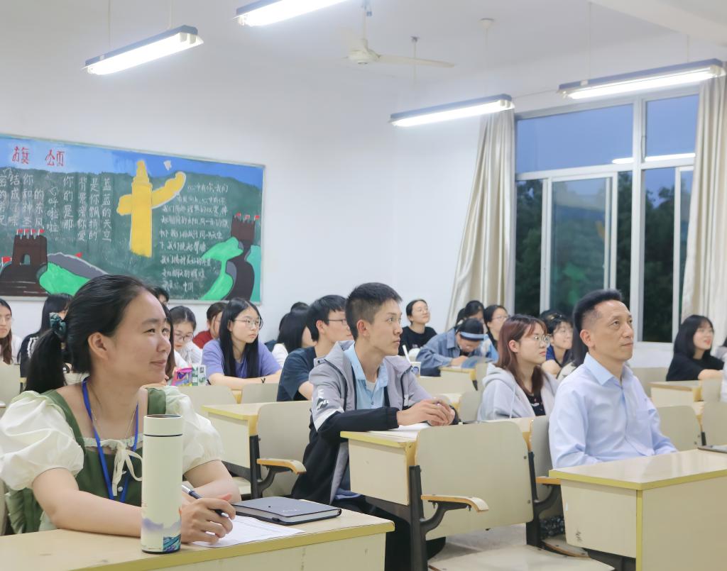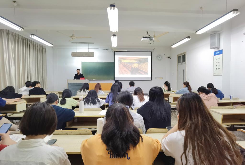 活动伊始,李金荣老师便强调作为中文系的同学,尤其是对于以后要从事语文教学的同学来说,对一篇文章的解读一定要有深入的了解和独到的见解。同学们从进入中文系开始便应培养用不同的视觉去阅读一篇文章的习惯,把握和运用好语言的架构。紧接着,李老师结合语文课本中的经典案例分别从“所有的艺术作品都是一定哲学思考下的美学架构”“文学作品的架构元素:言语”“言语架构产生的艺术效果”三个方面对写作意图支配下的言语结构做了深入解读。在李老师看来,作者的写作意图和情绪都融合在文章的具体段落中,文字的排列及语段的组合都是作者进行深思熟虑的结果,对中文系学生而言,要对语言的基本结构反复推敲,不断思考语言的组合架构,这样才能领略文学之美。在互动交流环节,李老师建议同学们要广泛阅读世界经典名著,赏析文章中的言语架构,在品味语言的过程中体悟作者的思想情感。