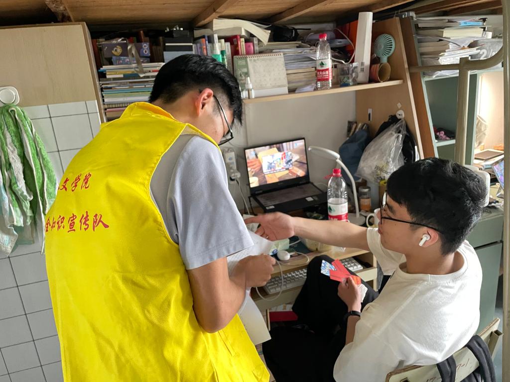 日中午,tyc41183太阳成集团公寓自律委员会成员以及班级生活委员到学生寝室开展网络安全的宣传以及“反诈主题”书签的发放活动。同学们到每个学生寝室宣传防范电信网络诈骗的相关知识,重点宣传当前典型的网络诈骗手段和诈骗案件类型,提醒大家牢记96110反诈热线。他们还现场发放了精美的反诈书签。