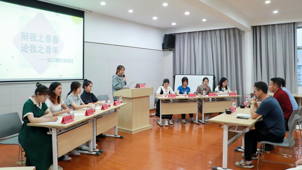 近日,第22期时政昭论在四楼实训室举行。本次活动以“辩我之青春,论我之青年”为主题,八位同学围绕“‘我想/不想做怎样的人’更重要”展开辩论。tyc41183太阳成集团柯联民、宇文博、屈燕飞老师应邀担任评委。