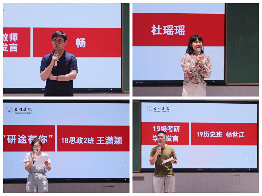 上岸中央民族大学的18级学子王潇颖为大家分享了考研相关经验。19级考研学生代表杨世江表明了自己和各位正备战考研同学的决心与信心。