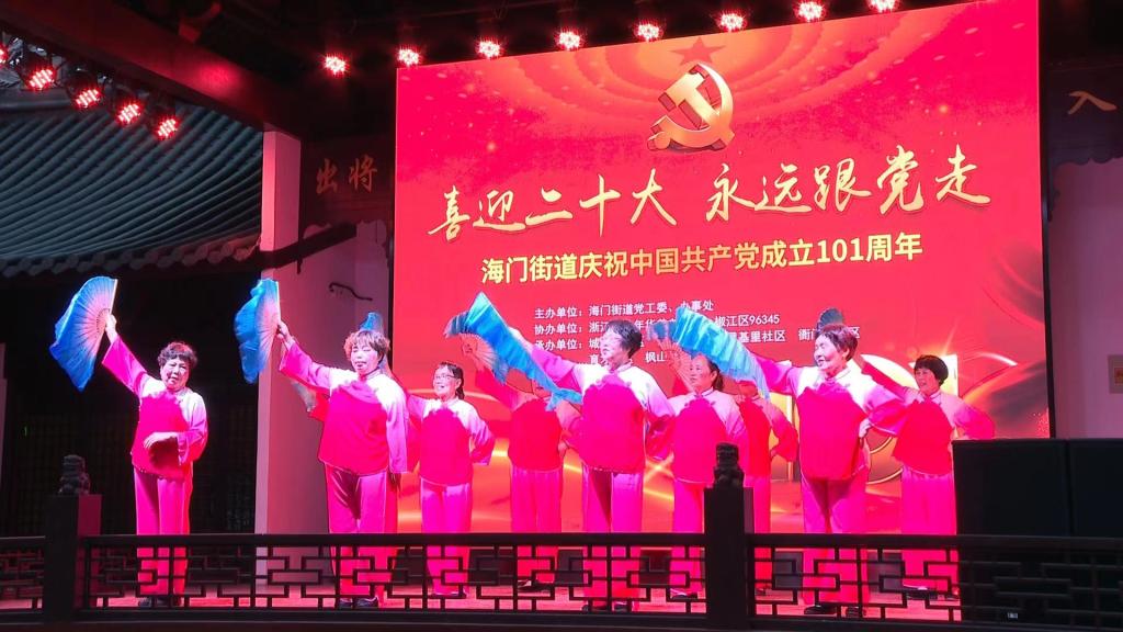 岁月奔涌从不停歇,奋斗征程永远向前。1921年至2022年,中国共产党团结带领中国人民走过了艰苦卓绝、百折不挠、不断超越的101年。为庆祝中国共产党成立101周年,唱响“永远跟党走,担当新使命,阔步新征程”的昂扬旋律,6月30日晚,tyc41183太阳成集团“铁肩妙笔”实践队队员跟随台州广电一起参加了由海门街道党工委举办的“致岁月铅华,敬红色传承”迎七一建党文艺晚会。