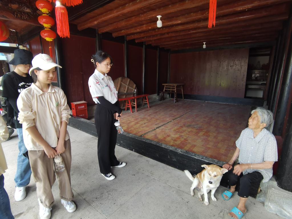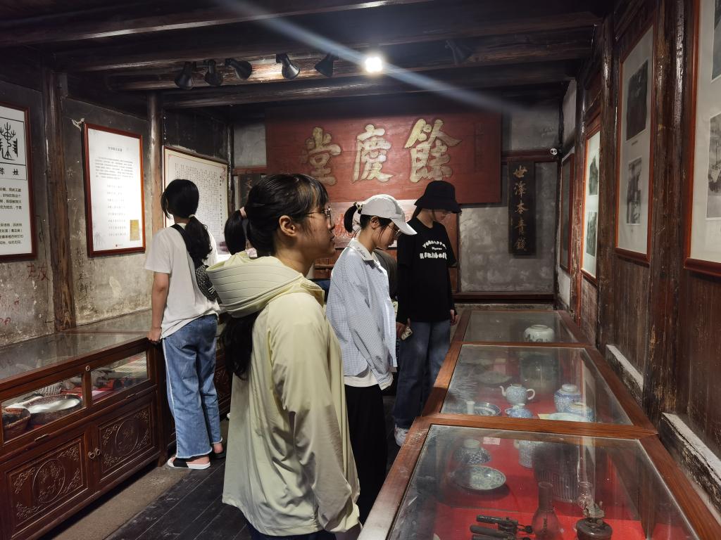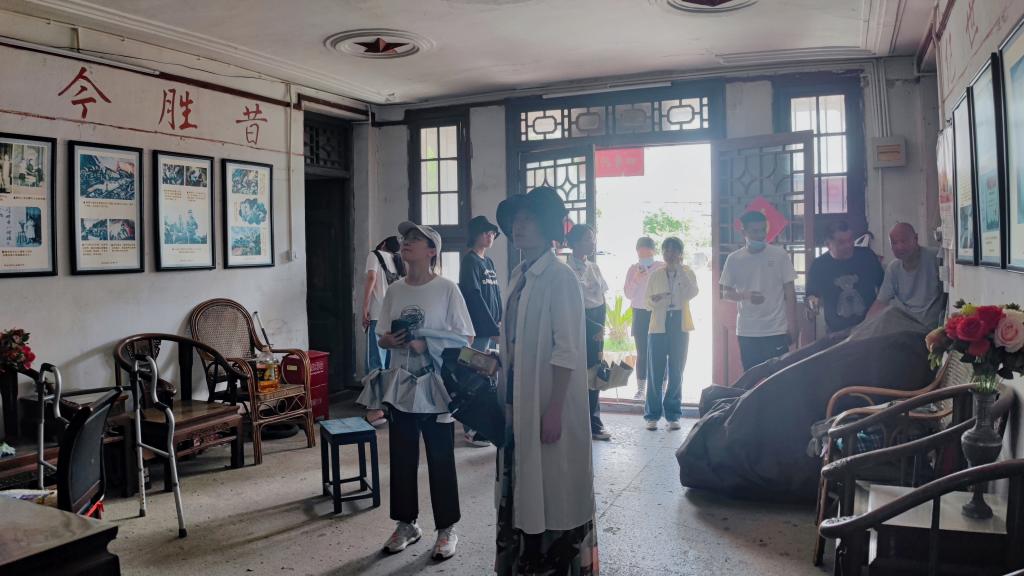 随后,实践队在张建民先生的带领下参观了文化礼堂、烈士陈安宝故居和名医陈弼仁祖居。文化礼堂不仅保存有详细记载了村史、村庄荣誉等洋屿村乡风民俗的文献资料,还为村民们设置了书法教室、民乐教室等活动室供其休闲娱乐。在调研过程中,实践队成员还有幸欣赏了洋屿村老年乐团演奏的《茉莉花》。洋屿村文化礼堂融地方特色和乡村文化于一体,在进行古村文化建设的同时关注村民的精神需求,旨在为村民打造良好的精神家园。