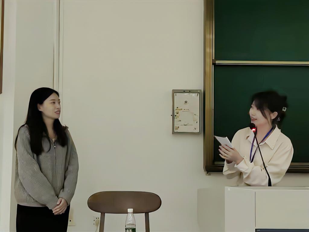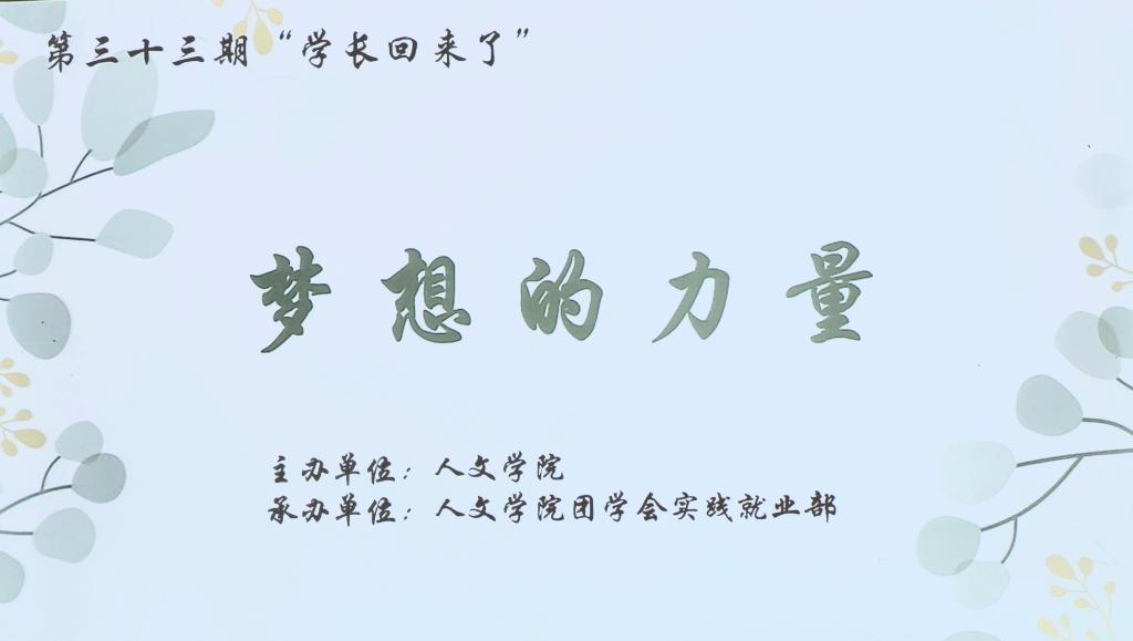 活动伊始,胡天霞学姐分享了她在天台县人民检察院的工作经历,她通过播放短视频的方式向同学们介绍检察院的工作内容。她表示,非法律专业的同学也可以进入检察院从事普法相关工作,大家要大胆想象,敢于突破专业对就业的限制。随后,胡天霞学姐分享了她在江苏省教育考试院的任职经历,在视频里,同学们了解到“一张试卷的前世今生”以及“入闱命题”背后的故事。紧接着,胡天霞学姐分享了她在孔子学院参与各项文化活动的经历,她鼓励同学们积极学习多元文化,拓展个人才艺。胡天霞学姐还结合自身的学习经历,和同学们分享了逆向思维的学习模式,即从“目标推倒、任务分解、倒行逆施”三方面提升自我、实现目标。最后,胡天霞学姐鼓励同学们走出校园、开拓眼界:“如果你不出去走走,你就会以为这就是世界。”