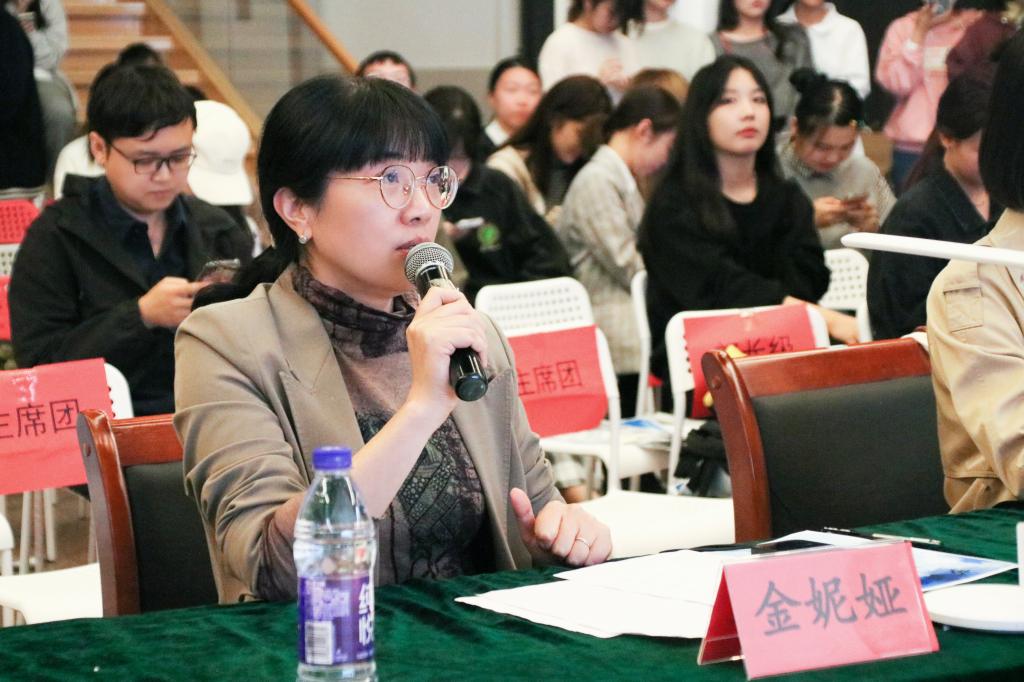 在最后的老师点评环节,金妮娅老师既肯定了同学们的努力付出,也客观地对剧本和表演中存在的问题提出批评。就人物台词、动作、舞台元素运用等方面,金老师给出了一系列专业建议。她希望同学们工于笔力,钻研话剧形式,精心打磨出优秀的作品,希望演员们尊重舞台,享受表演,珍惜在在舞台上的每一刻。