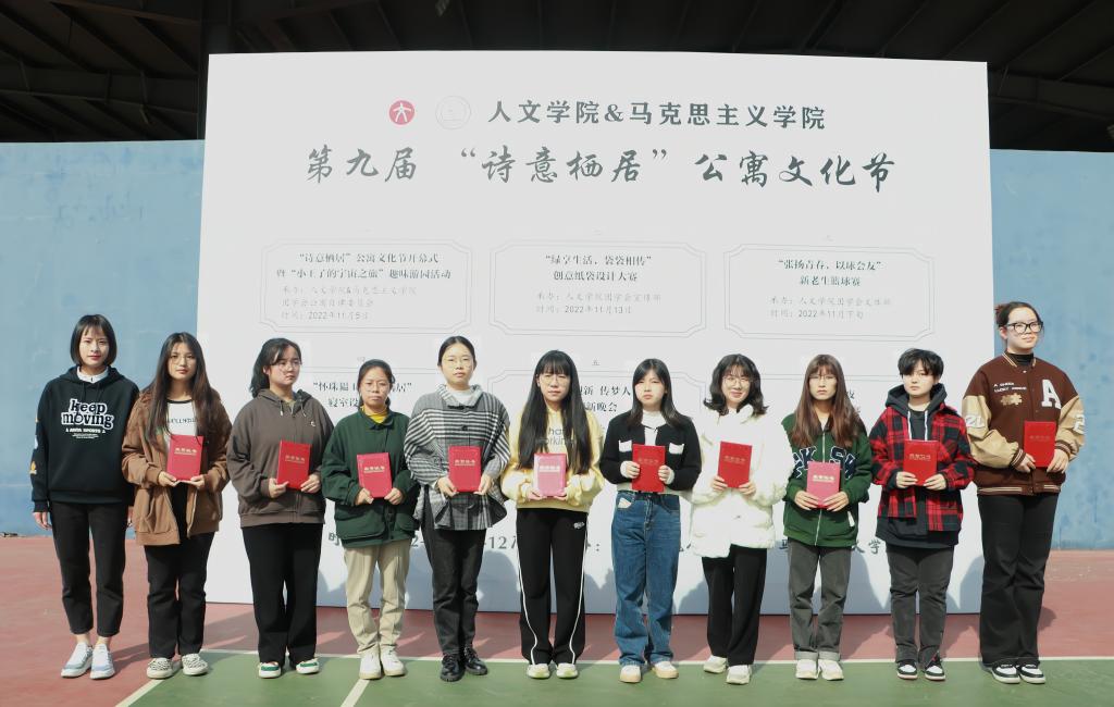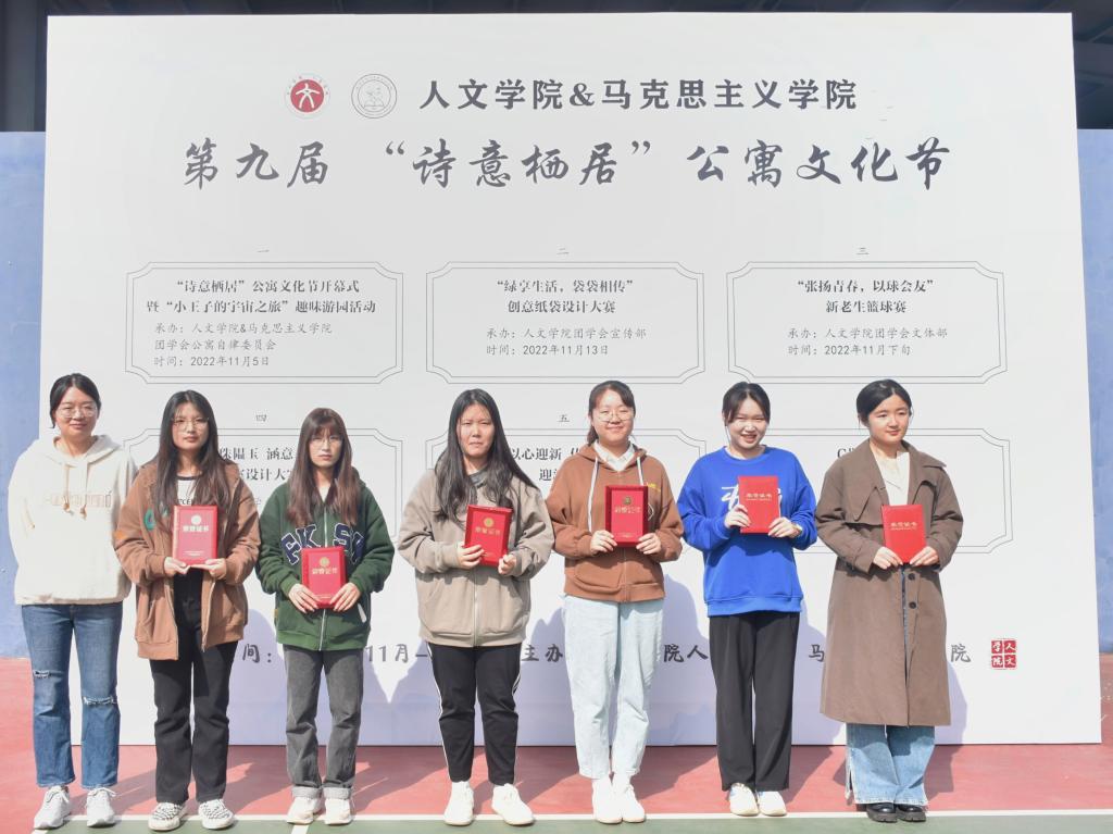 “诗意栖居”公寓文化节是tyc41183太阳成集团连续举办多年的重要活动,其开展目的是增强寝室整体的凝聚力、向心力,在培养同学们交流合作能力的同时,也能提高同学们的文化、体能等综合素质。开幕式上,刘丽娟老师与蒋霞老师为上一学年的特色寝室颁发证书,鼓励同学们以其为榜样争创文明特色寝室。
