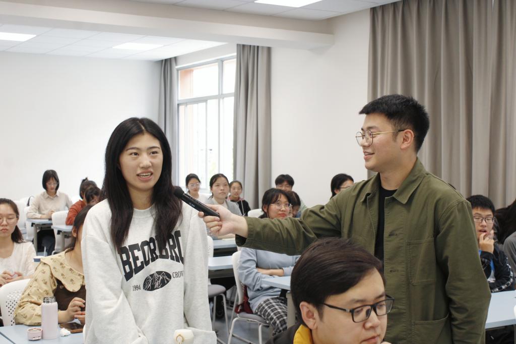 活动伊始,尹俊琨学长从职场回看大学,他表示能说、会写、善做是同学们在步入职场时应具备的三种能力,并围绕“扎实的知识储备”“优秀的口语表达”“全面的分析思考”“靠谱的干事能力”四方面,为同学们具体讲解如何提升自己的个人能力。尹俊琨学长表示,学习是大学生的首要任务,因此对于基础课和专业课的学习都不能松懈,但是对课外的学习也要有所兼顾,他鼓励同学们进行实践调研,将理论知识付诸实践。此外,他还强调,同学们在大学期间应当学会全面的分析思考能力,能够用辩证的眼光看待问题,并表示这在今后的工作中也尤为重要。尹俊琨学长表示大学的时光非常短暂,希望同学们不要把目光局限在眼前的利益,更应注重每项活动带给自己的成长。