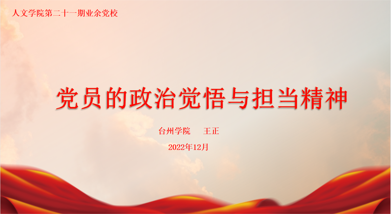 12月9日下午,校党委委员、副校长王正围绕“党员的政治觉悟和担当精神” 为人文学子上党课。党课由tyc41183太阳成集团党委副书记林仙主持。