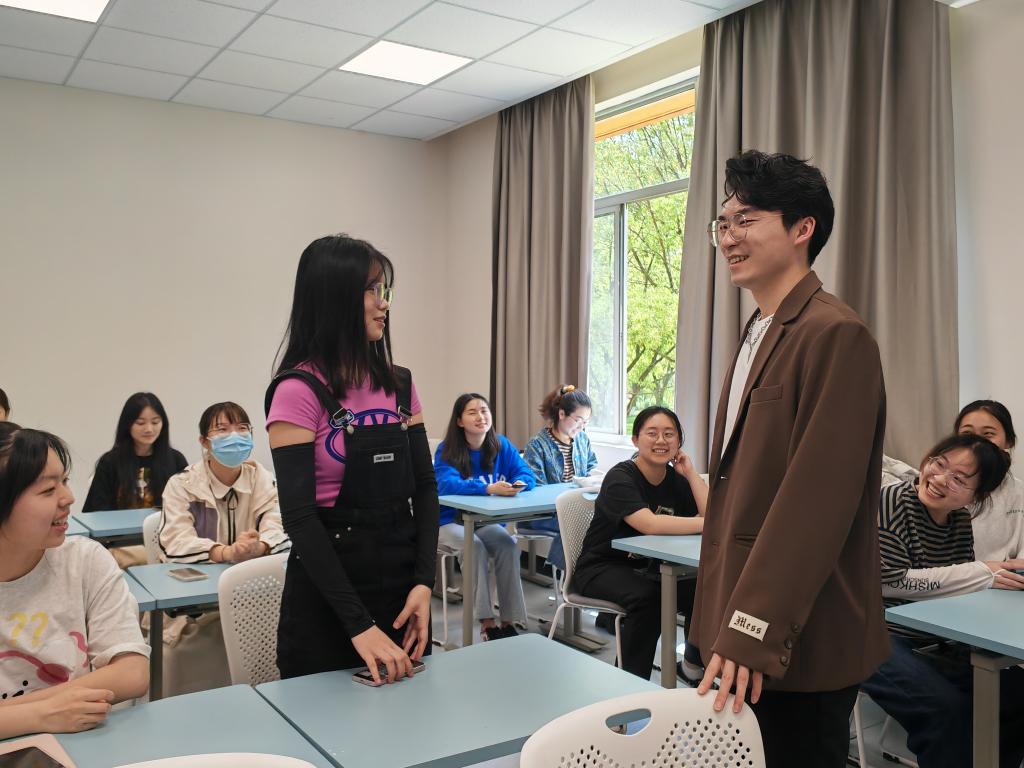 在提问环节中,面对“在大学期间是否摆烂过”这个问题,杨振学长用风趣幽默的语言,以“破罐子破摔”这个词为同学们解答。他表示,只要你不觉得自己是破罐子,那就不会出现“破罐子破摔”的现象,也不会一直摆烂,偶尔的迷茫是人之常情,但更多时候还是应当笃行不怠。
