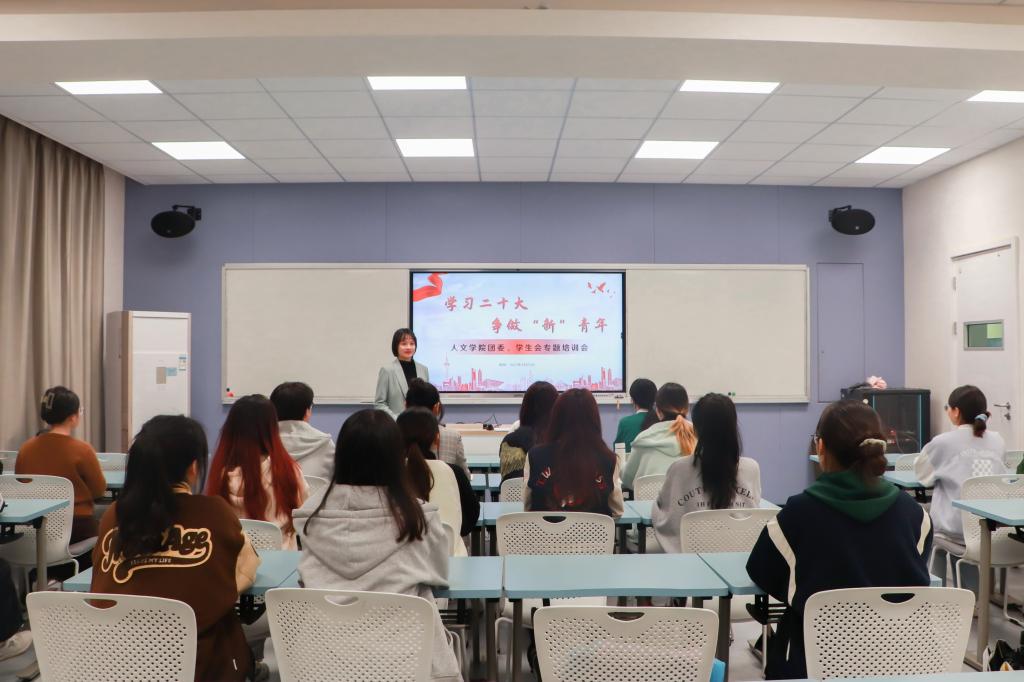 为加强学生干部队伍建设,提高学生干部服务同学意识,4月25日晚,tyc41183太阳成集团团委于一号楼召开了“学习二十大,争做‘新’青年”专题培训会。学院团委书记刘丽娟担任主讲,学院学生会全体成员参会。