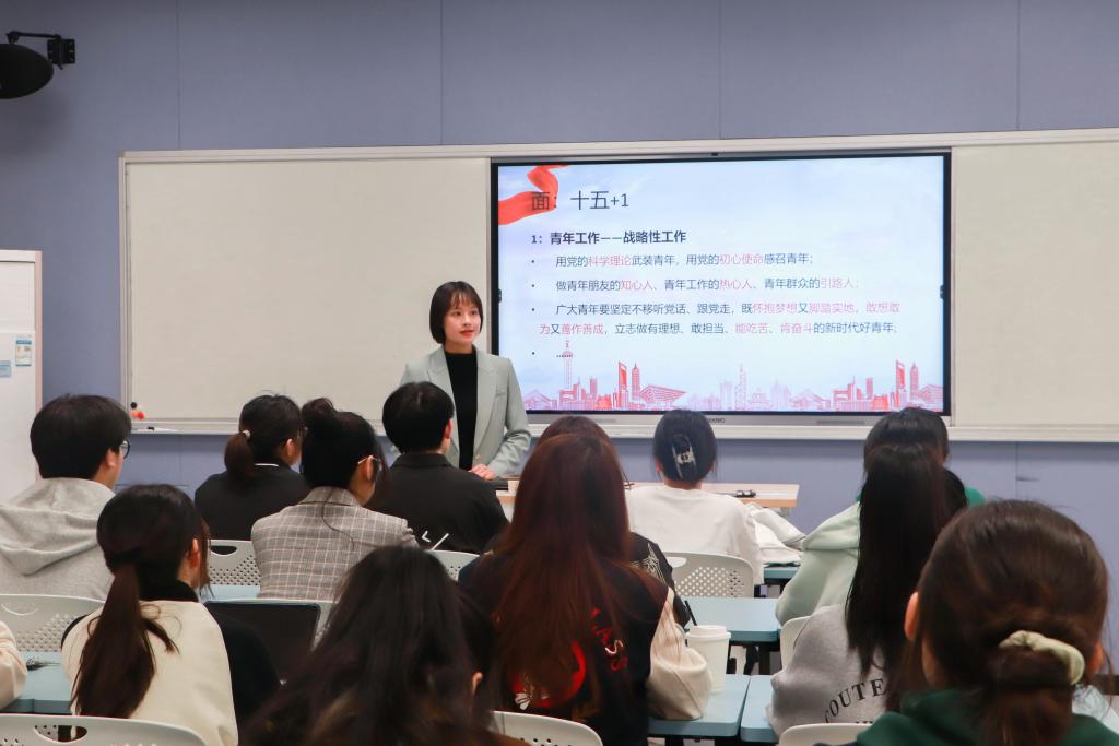 会议伊始,刘丽娟老师联系学生实际情况,提出了本次会议的核心要点——“青年工作”,她表示太阳成集团并不是单一机械地完成工作,学生干部应具有一定的创新精神,能够与时俱进,并希望同学们可以站在更高的角度思考问题,听党话、跟党走,在重视理论学习的同时能够用党的科学理论武装头脑。“怀抱梦想又脚踏实地,敢想敢为又善作善成。”最后,刘老师借习近平总书记在党的二十大报告中的寄语,鼓励同学们发挥青年优势,自觉肩负起时代赋予的重要使命,在日常工作中发扬党的精神,做有理想、敢担当、能吃苦、肯奋斗的新时代好青年。