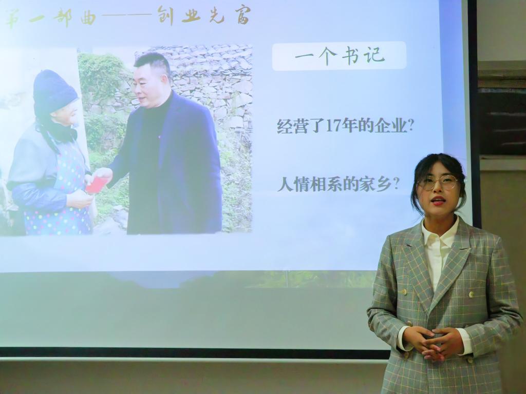 “新声”宣讲团成员何燕向同学们介绍了安吉余村的绿色发展之路,并从余村三抹绿色出发,介绍余村青年在改造余村起到的重要作用。在何燕同学的宣讲中,同学们深刻体会到了忠实践行“八八战略”、奋力推进“两个先行”的精神力量,以及青年人在新时代应肩负的使命和巨大的创造力量。