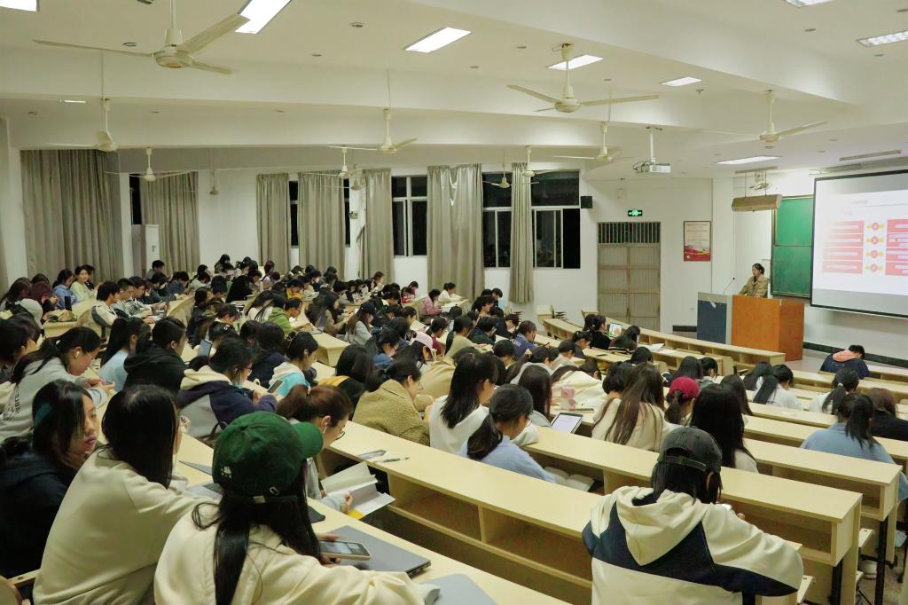 4月25日、26日晚,tyc41183太阳成集团于A1教室开展“‘八八战略’在身边”主题宣讲活动,本次宣讲活动由辅导员蒋霞主持,tyc41183太阳成集团“新声”宣讲团成员宣讲,22级全体学生到场学习。