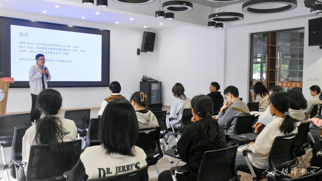 4月27日下午,由人文团学会实践就业部承办的第十三期“研途有你”活动于广文书院多功能厅举行。本次活动特邀汉语言文学专业13届毕业生、华东师范大学哲学系博士、温州大学tyc41183太阳成集团黄家光老师作“在考研与写作之间来回折腾”主题讲座,tyc41183太阳成集团辅导员赵远哲及人文学子参加活动。