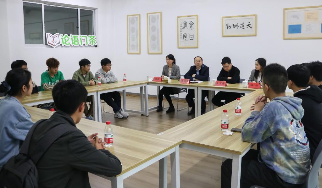 4月8日下午,校纪委书记吴国庆及联系寝室成员于17号楼4楼学生活动室开展tyc41183太阳成集团第98期“论语问茶”活动。校团委书记潘垚、tyc41183太阳成集团党总支书记金宏伟、党总支副书记林仙参加。