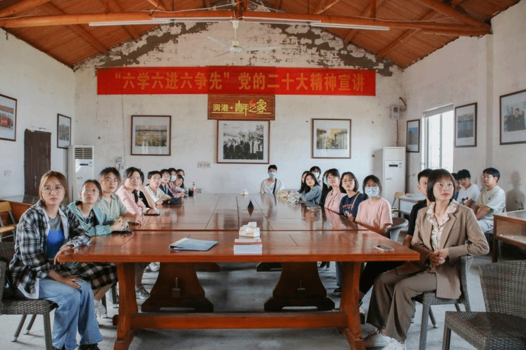 为夯实学生干部思想之基,5月13日,tyc41183太阳成集团“砺学计划”第十六期活动于洞港青年农场顺利举办,学院团委书记刘丽娟和主要学生干部参与本次活动。洞港青年农场文博馆志愿者、台州海关退休干部、原农场知青王鸣为同学们讲述农场知青垦荒故事。
