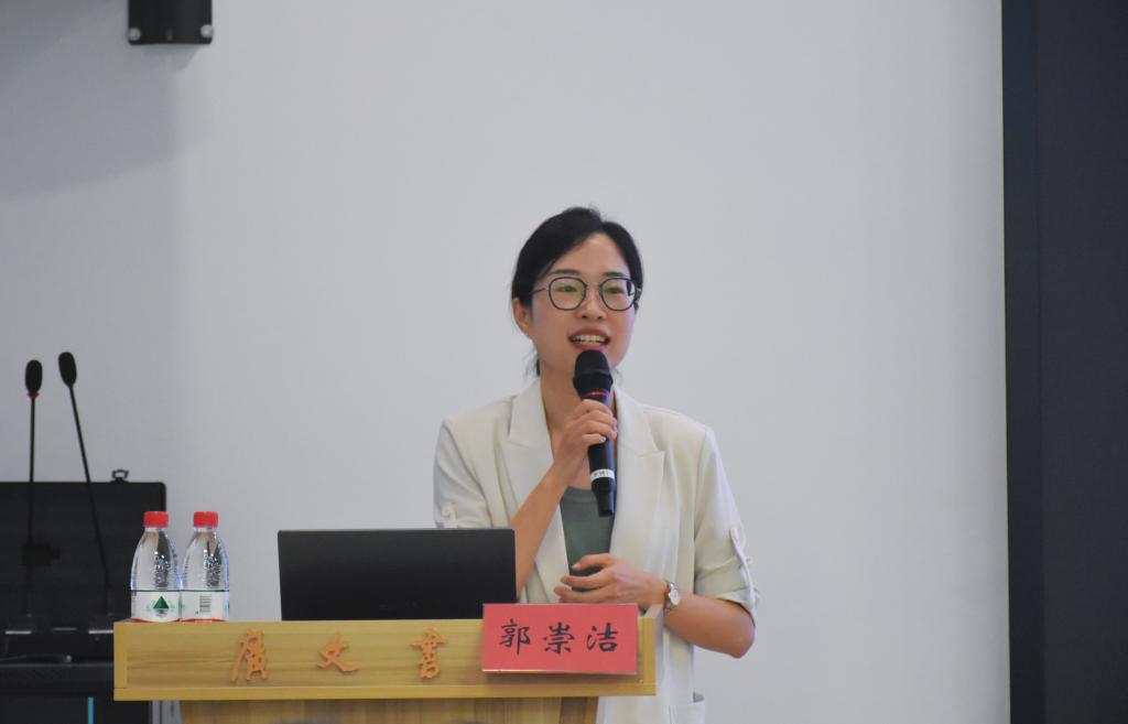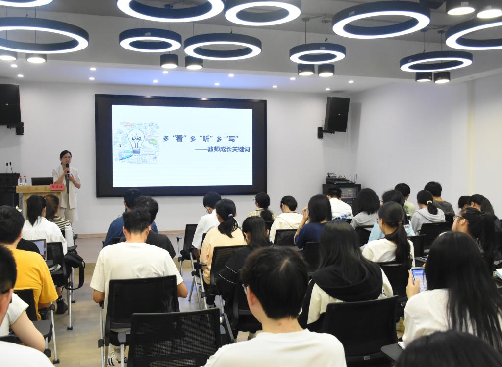 活动伊始,郭崇洁学姐开门见山地提出了教师成长的三个关键词——“看”“听”“写”,并表示“多看”“多听”“多写”是今天同大家共勉的三组词。在“看”方面,郭学姐结合自身经验与远赴新疆支教的经历,指出我们既要看书中的世界,勤加阅读提升自我,也要看屋外的风景,走进现实世界,博观而求真;在“听”方面,则既要听同行的智慧,借鉴前辈经验,虚心接受他人评价,也要听学生的声音,成为他们信任的人,促进教学相长;在“写”方面,她畅谈自己的论文获奖经历及《塔河邮箱》出书历程,表示作为一名教师,既要写教学的所思——认真记录整堂课下来的所思所想,也要写人生的所得——记录生活中的感悟,从而得到成长。