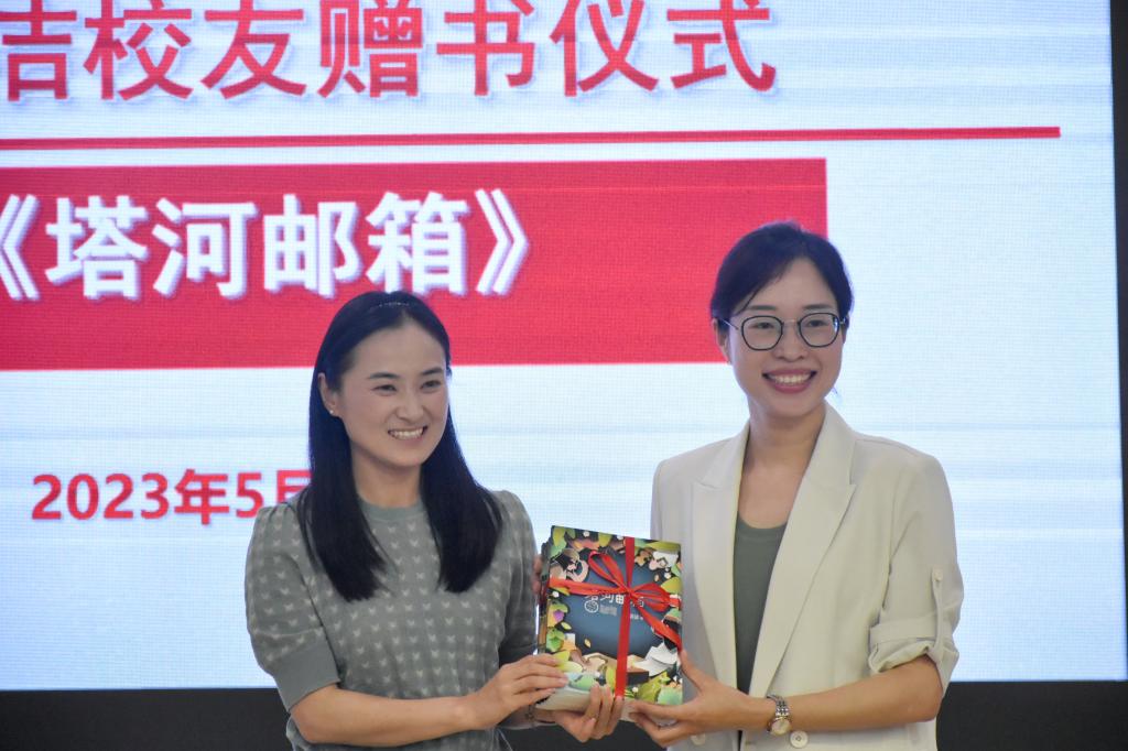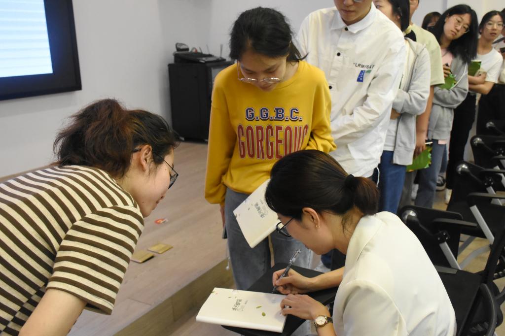活动最后,郭崇洁学姐向学院赠送《塔河邮箱》一书,并为同学们签名留念。
