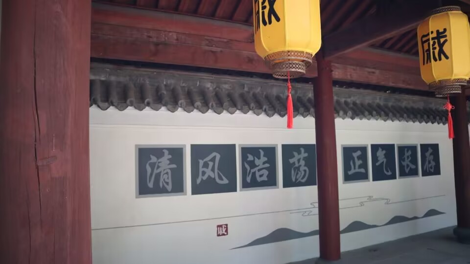 随后,队员们来到外殿。外殿有一清风堂,设有以“山魂海魄,气正风清”为主题的廉政文化展,收录了临海历史上多位清官事迹。清风堂的两侧就是清风长廊,廊上的绘画生动再现了戚继光募兵、练兵的场景,讲诉了戚继光及其父戚景通的廉政爱民故事和家风传承。队员们看着“律己革弊”“少小养廉”等绘画和墙面上“清风浩荡,正气长存”“国风之本在家风,以身教者从”等语录,戚继光的公正廉洁在队员们心中深深印刻。
