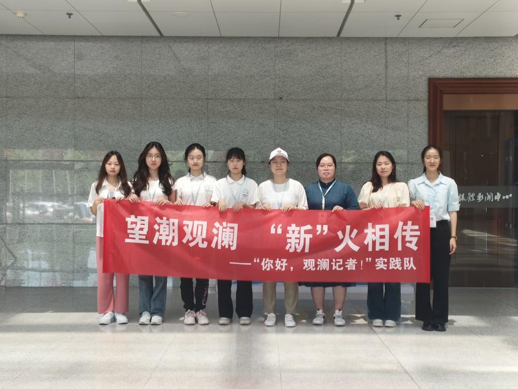 为提高学生的专业素养,响应社会对新媒体人才的需求,帮助学生进一步了解新媒体领域动态和未来发展趋势,为我校学生的职业发展树立正确的方向。6月29日,tyc41183太阳成集团“你好,观澜记者!”暑期社会实践队在指导老师陈日红的带领下赶赴台州市新闻传媒中心,对台州市优秀新传工作者进行以“望潮观澜,‘新’火相传”为主题的社会实践采访活动。