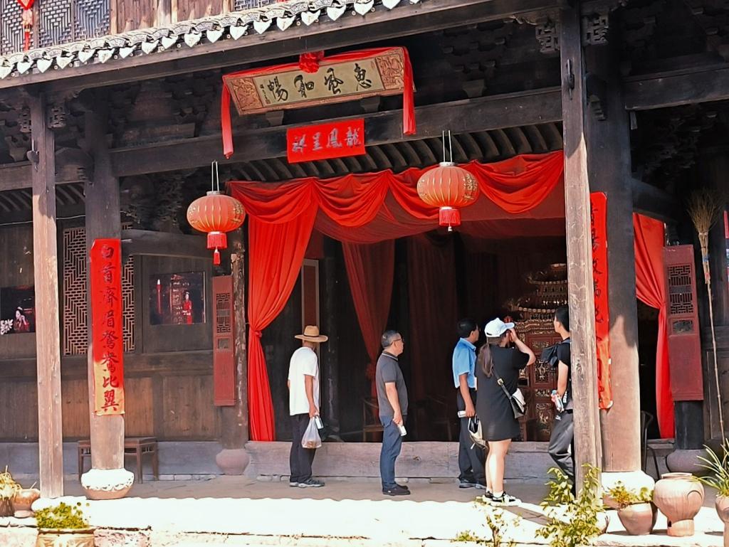 实践队员们邂逅的一场跨越千百年的浪漫,是隐匿在青山墨瓦中的东屏红妆博物馆。走进博物馆,古色古香的楼阁再现了古人成婚洞房花烛夜的画面,这一幕也是十里红妆婚俗的重要场景。