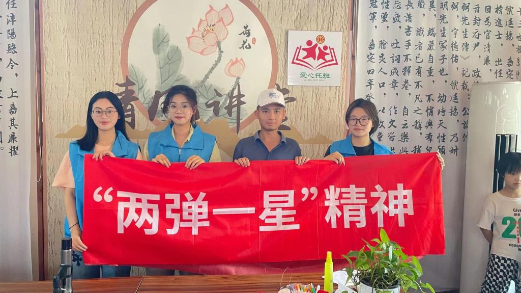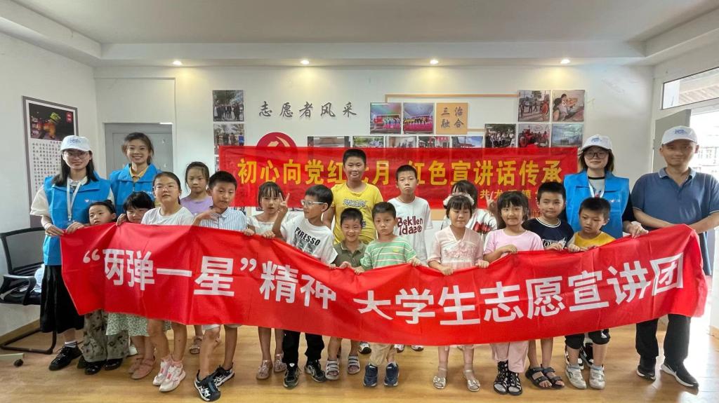 7月6日和7日,在潘润老师的带领下,tyc41183太阳成集团“星青年”志愿宣讲团来到了临海市尤溪镇坎头村、向阳村、殿前村和拓卡奔马,为孩子们生动地讲述和再现了“两弹一星”奋斗者的青春故事,深刻阐释了“两弹一星”崇高精神,并带来了充满激情的爱国主义教育课和深入人心的新时代思政课。