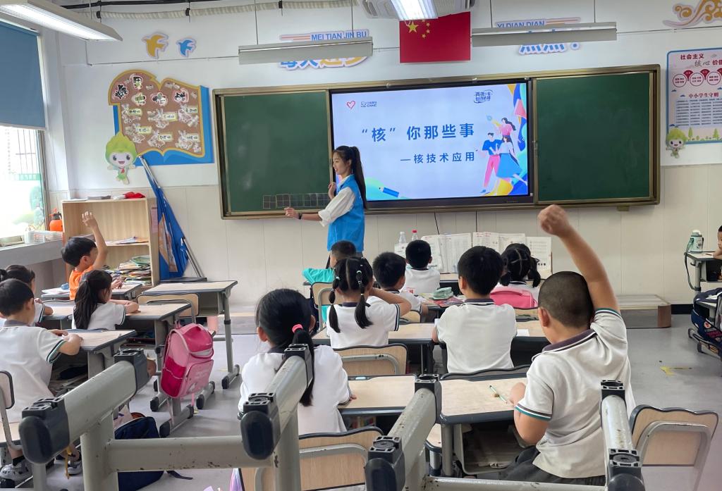 在宣讲员引导和学生自主探究相结合的方式下,孩子们充分了解了“核”到底是什么,“核”的工作原理是什么,并通过图片、视频等进一步具象化地知晓了核技术在生活中的应用,对于曾经陌生的“核”知识形成了初步概念。