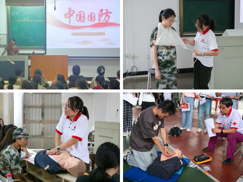 军训期间,同学们在帮训教官带领指导下进行了队列队形、军体拳、内务整理、军事技能等训练,聆听了军事理论讲座,开展了心肺复苏等急救知识培训。