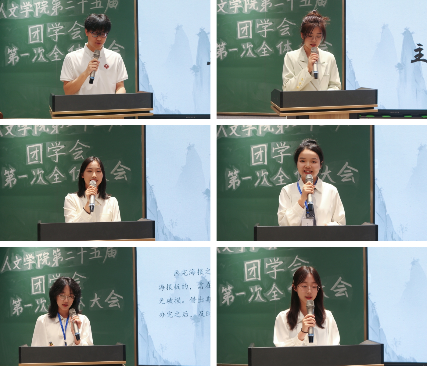 新一届主席团成员和各部门负责人结合自己的工作经验与心得感悟,鼓励大家在团学会中要敢于尝试,踏实工作,锻炼自我,同时也就部门的工作内容和规章制度进行了解读,进一步明晰了工作要求和职责。期间学院还为主席团成员和各部门部长颁发了聘书。