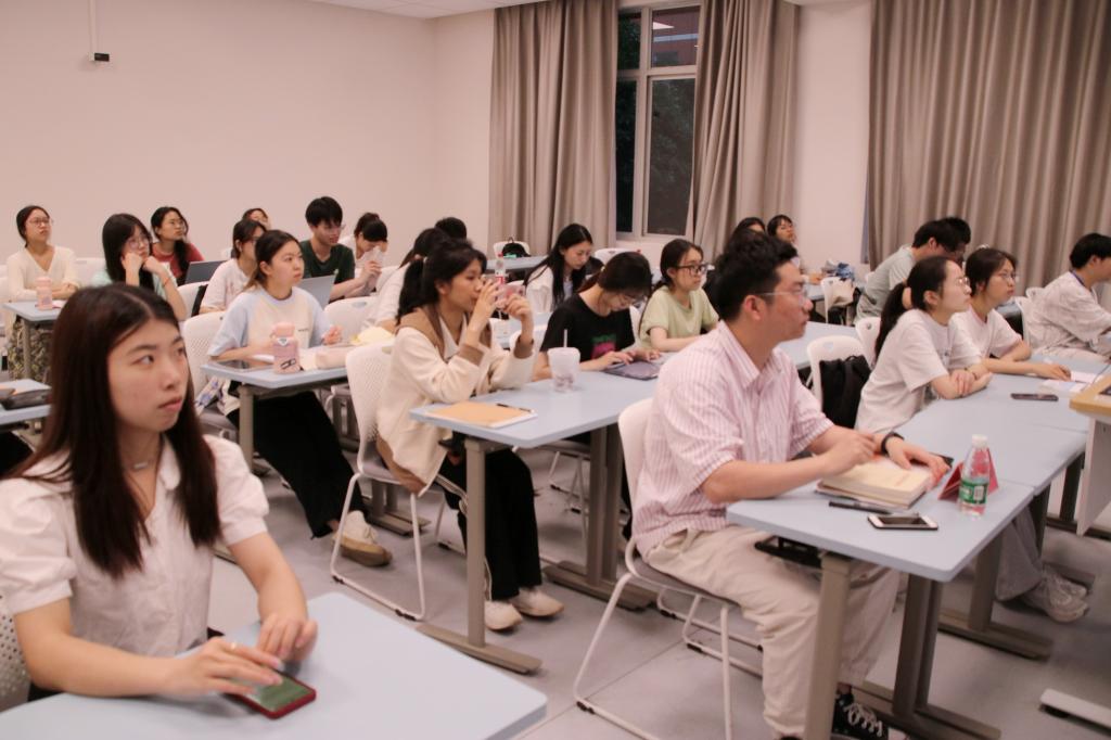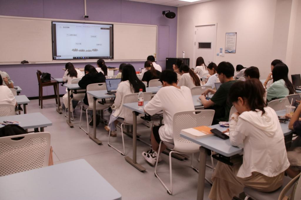 会议伊始,黄祖钦结合自身考研经历,从申请准备材料、选校策略、留学申请流程、面试技巧等方面,为大家详细讲解了相关注意事项,并提出了宝贵的建议。他向大家进一步介绍了雅思考试各个组成部分的特点,并提出了具体且有针对性的学习建议。随后,他在分享面试技巧时特别强调,在无领导小组讨论的面试环节中,应积极主动地争取发言机会,以更好地展现个人能力和风采。
