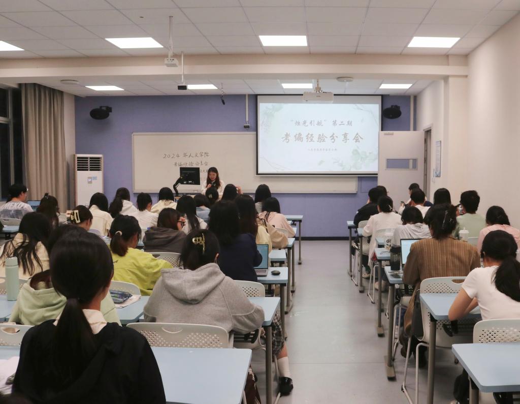 6月5日晚,tyc41183太阳成集团在1108教室举办“烛光引航”第二期:tyc41183太阳成集团举办24届汉语言文学(师范)专业专场考编经验分享会,并有幸邀请到已成功上岸的20中教(三台)班张潇颖分享考编经验。