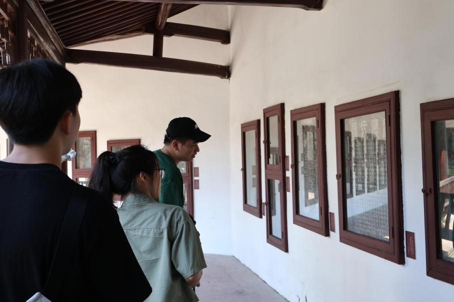 上午,实践队员们集中在东湖景区进行实践,走过荣兴堂、碑林、湖心亭、半勾亭、项士元纪念室、樵云阁等地点,了解到郑虔,骆宾王,项士元,东湖樵夫,鲍复泰,方孝孺,刘璈等人物的生平,从他们的人生故事中学理、研德,探究千百年未曾变味的浙东古韵。