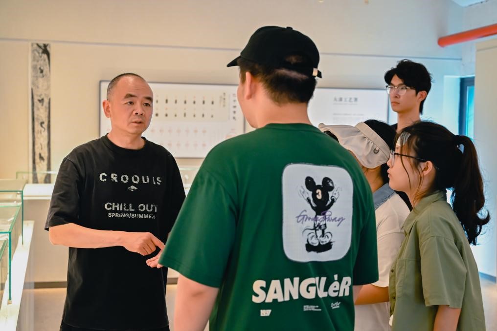 下午,实践队员们来到紫阳街的“华夏一双”筷子博物馆。博物馆馆长李东升非常详细且耐心地为同学们讲解了筷子发展的相关历史,中华筷子的文化圈,筷子的材质、工艺以及造型的差异。此外,李东升还向实践队员介绍他的相关设计作品,告诉实践队员们“自然、建筑、经典电影、节气文化等都是灵感的来源”,灵活的设计为筷子带来了更多趣味性。面对现代化浪潮,很多传统的手工艺都面临一些困境,李东升认为手艺人要让自己发光才能让别人看到,要不忘激情地保持热爱,精益求精地做好手艺。在李东升的讲述过程中,同学们也深深地感受到他为了做好一件事,十年如一日坚持热爱的工匠精神。