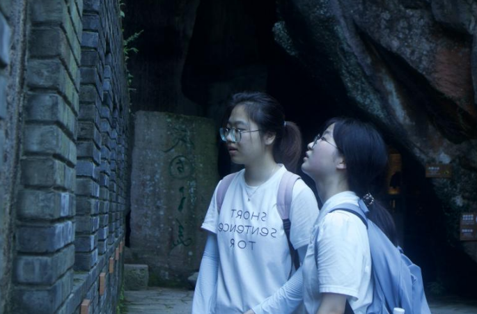7月6日下午,实践队行至天台山大瀑布,随后前往天台国清寺。国清寺为中国佛教天台宗的发源地,亦为日韩两国佛教天台宗的祖庭。实践队立足于宗教文化、和合文化、诗词书法艺术,先后游览碑廊、隋梅、隋塔等景点,聚焦于挖掘、展示国清寺的诗词底蕴,以此更好契合作为实践队调研主题之一的“诗韵山水旅”。