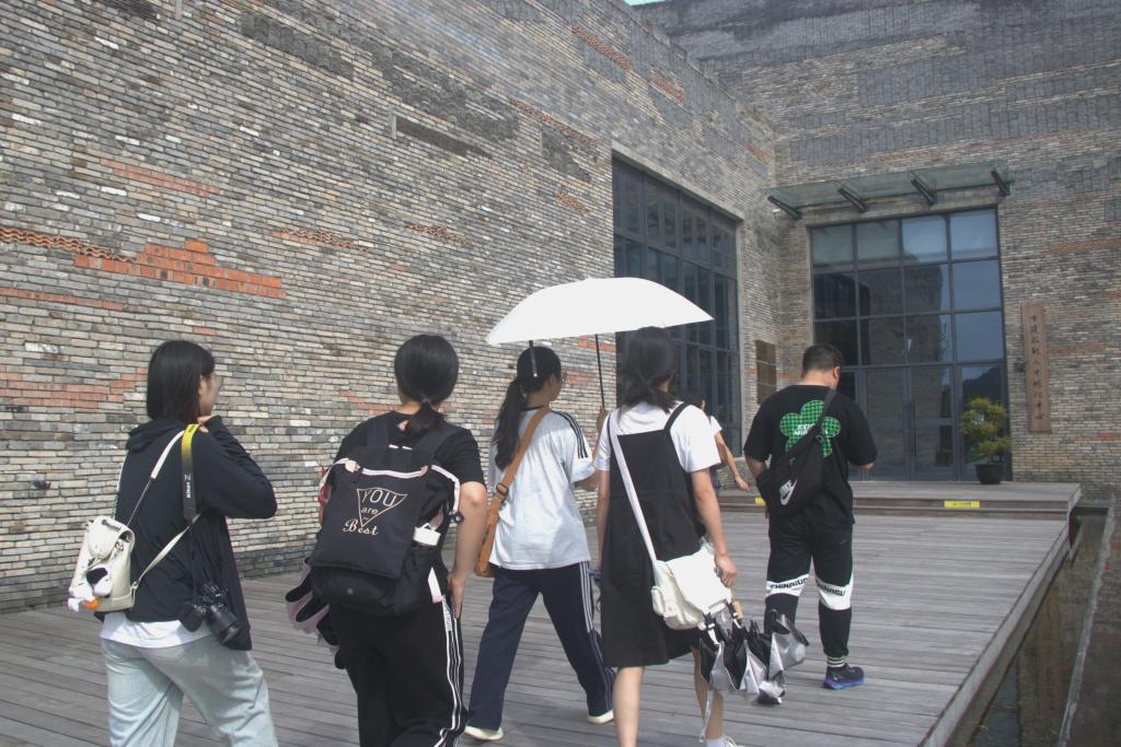 实践队一行抵达博物馆后,便被博物馆前一座高达20米的斗拱雕塑深深吸引。这是汇溪镇的主题镇标,雕塑整体呈现解构变化的形象,寓意传统古建技艺及文化在发展的过程中,所具有的各种可能性和强大的生命力。