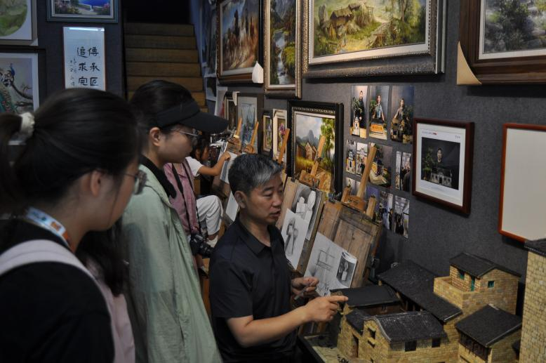 与此同时,二组实践队员来到被誉为“小上海”的椒江海门老街,专门采访了微雕艺术家——李海兵。李海兵融历史文化于现代民宿,为实践队员们详细介绍了新作“温岭民宿微雕”;以椒江历史画为媒介,阐述椒江三十年的历史变迁与发展。此外,李海兵强调,微雕制作须秉持精益求精的工匠精神,“微雕不仅是对事物的缩小复制,更是一种精神的传承”。随后,实践队前往一江山岛战役纪念馆参观。馆内丰富的历史文物和照片,生动再现了一江山岛解放战役波澜壮阔的场景。通过参观,队员们更深刻把握了椒江的历史文化和革命精神。