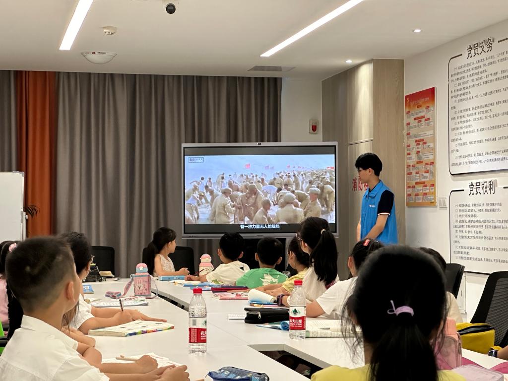授课之余,实践队成员们积极传达红色使命。7月8日下午,实践队对接太阳成集团tyc41183星青年志愿宣讲团,为孩子们带去了“两弹一星”的知识;7月12日下午,实践队成员组织孩子们进行红色观影暨观后感分享活动,意在赓续红色血脉。先辈们为了民族的独立和人民的幸福,用鲜血和汗水灌注了中华大地,他们的英勇事迹使孩子们为之震撼、为之动容。