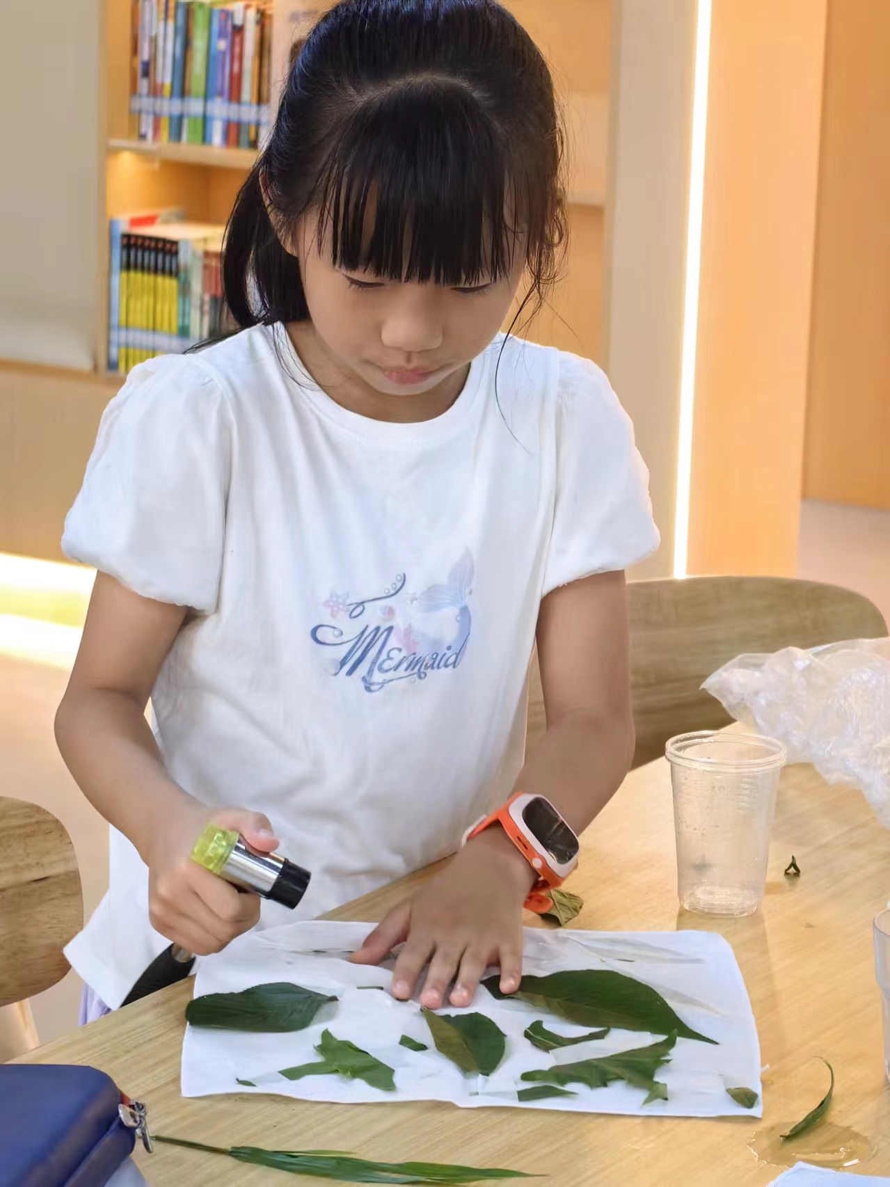 午后,学生们满怀好奇与期待地走出教室,走进自然,在沿江镇的美丽风光中寻找合适的树叶作为拓染素材,他们小心翼翼地拾起一片片落叶,仿佛是在收集大自然的秘密与故事。在实践队员的带领下,孩子们学习了树叶拓染的基本技巧,在动手实践的过程中,孩子们展现出了惊人的创造力和想象力,一幅幅充满自然韵味和创意色彩的拓染作品在孩子们的手中诞生。这些作品不仅是对大自然之美的致敬,更是孩子们心灵手巧、创意无限的见证。