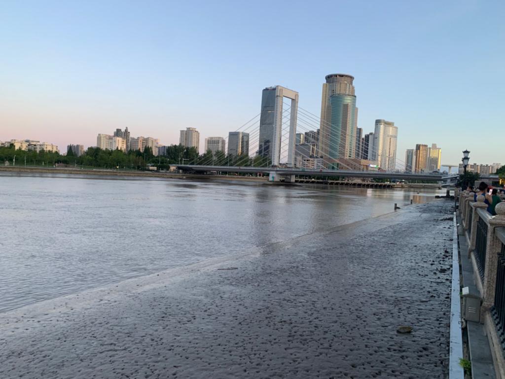 位于三江口的江北岸,作为进入宁波古城的门户,老外滩展现出当地的历史记忆、多元文化风貌,以及宁波作为丝绸之路经济重镇的辉煌往昔,包括海上丝绸之路的灿烂篇章。在1844年开埠,作为“五口通商”中的最早对外开放区,宁波老外滩是宁波帮的发祥地,孕育出独特的商帮文化。漫步在繁华的步行商业街街头,实践队从科技屏中了解到关于老外滩的人文故事、旅游经典以及知名品牌。街中林列有各色酒吧商铺,外围布有美食小街。美食小街中入驻有各色美食品牌商铺。实践队走出美食小街,可见海岸线上仍有淤泥堆积,回忆起明州港(今宁波市)曾商行四海的历史。